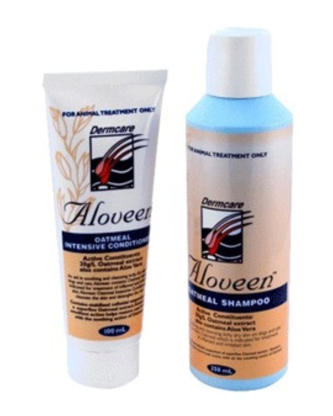 The Aloveen Starter Pack is ideal for those pets who suffer from dry and itchy skin. It contains a gentle cleansing shampoo which removes dirt, chemicals and allergens from the coat without irritating the skin. The shampoo also contains superfine colloidal oatmeal and aloe vera which soothes the skin. The Aloveen Oatmeal Conditioner is a unique, concentrated residual conditioner, specifically designed as a leave on product for deeper conditioning, and to prolong the soothing effects of the Aloveen Oatmeal Shampoo.