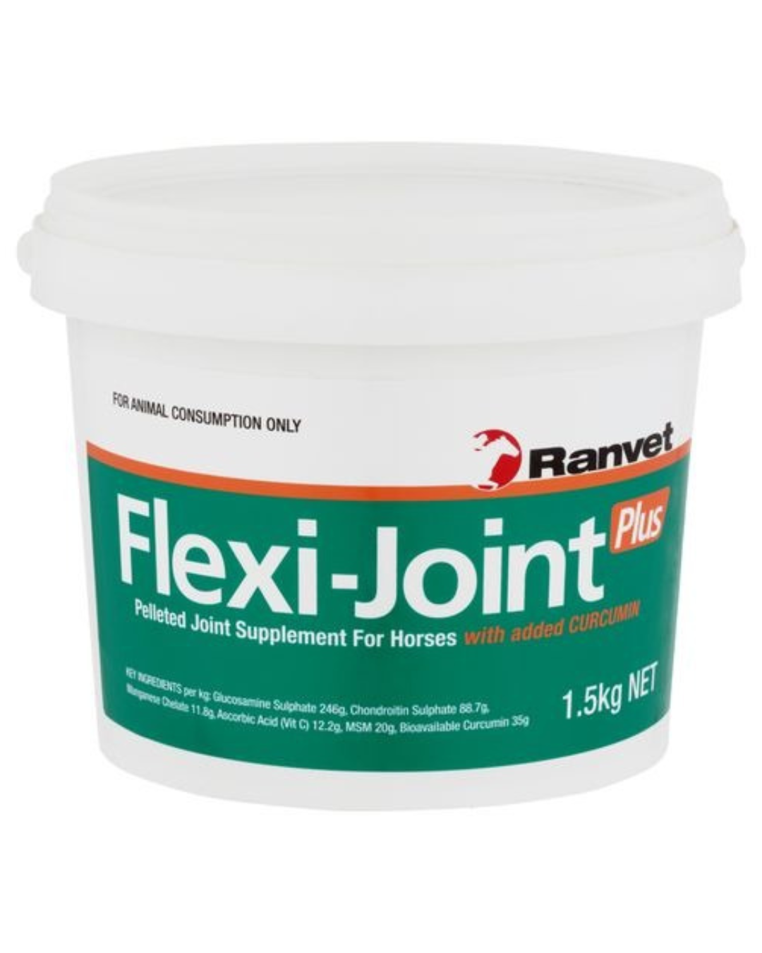 Supplement to assist in improvement of joint health and function in horses. Provides optimal levels of Glucosamine Sulphate, Chondroitin Sulphate, and Manganese. Delivers high-quality Glucosamine Sulphate which is readily absorbed to offer superior concentrations of sulphates within the articular cartilage. Contains Manganese a co-factor that is essential for the synthesis of Chondroitin Sulphate within the articular cartilage matrix. Contains MSM and Bioavailable Curcumin that is known for their natural anti-inflammatory properties. Includes Vitamin C which is essential for the health of cartilage and connective tissues. Supplementation counteracts the degeneration of joint cartilage resulting from a variety of circumstances such as; direct trauma, structural abnormality of the joint, high impact performance, strenuous training and age-related deterioration. Helps aid joint movement and mobility. Stimulates cartilage formation and repair.