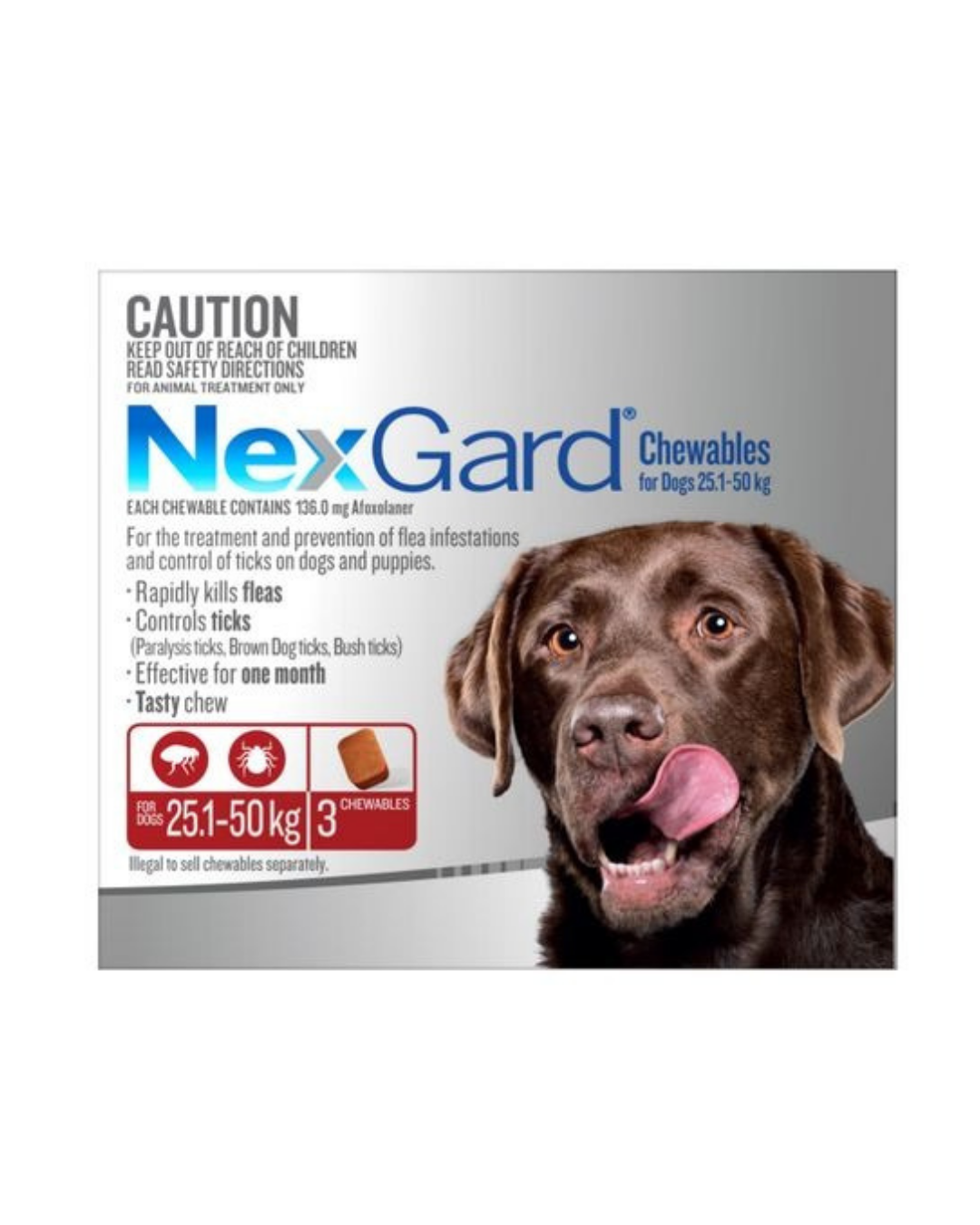 NexGard is the first oral product that kills fleas, deadly Paralysis ticks, Brown Dog ticks, and Bush ticks on dogs for a full month. Just one chew, once a month for year-round protection from fleas and ticks. NexGard is the first flea and tick treatment that comes as a tasty, beef-flavoured chew. The oral format also means no restrictions on swimming or bathing after treatment.