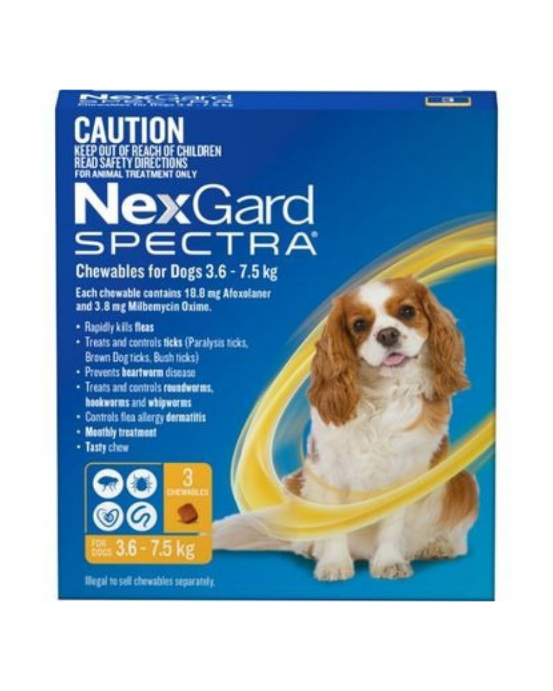 NexGard Spectra is a tasty beef-flavoured chew that dogs love. Just one chew, once a month